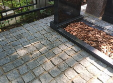На данном объекте нам надо было отремонтировать некоторые элементы места захоронения, положить брусчатку и заменить одно из надгробий.